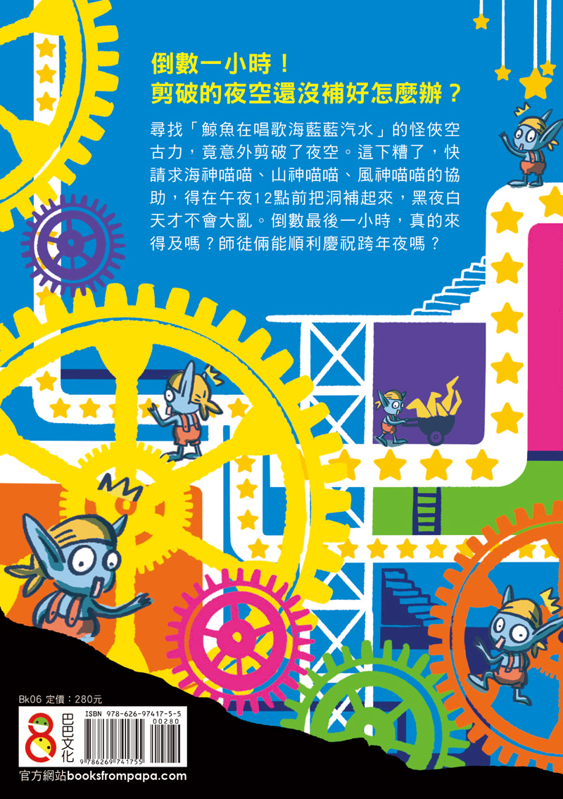 原是要尋找「鯨魚在唱歌海藍藍汽水」的怪俠空古力,竟意外發現了巨大星空剪刀!還莫名其妙地把整片天空剪了個大破洞。這下糟了,一定要在午夜12點以前把洞補起來,黑夜與白天才不會時間大亂。
