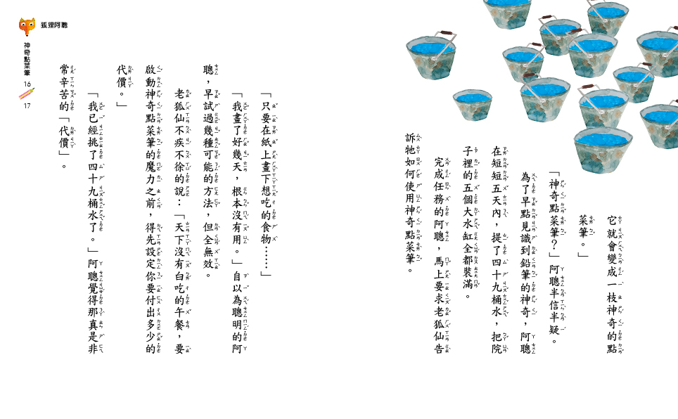 2、狐狸阿聰根本就是一個任性的小孩,貪吃、整天想玩、期待輕鬆過日子,那麼事情真的如牠所想的發展?才不!有趣的故事情節結合充滿想像力的法術等元素,出乎意料之外的結局,讓人腦筋跟著轉彎,哈哈大笑!