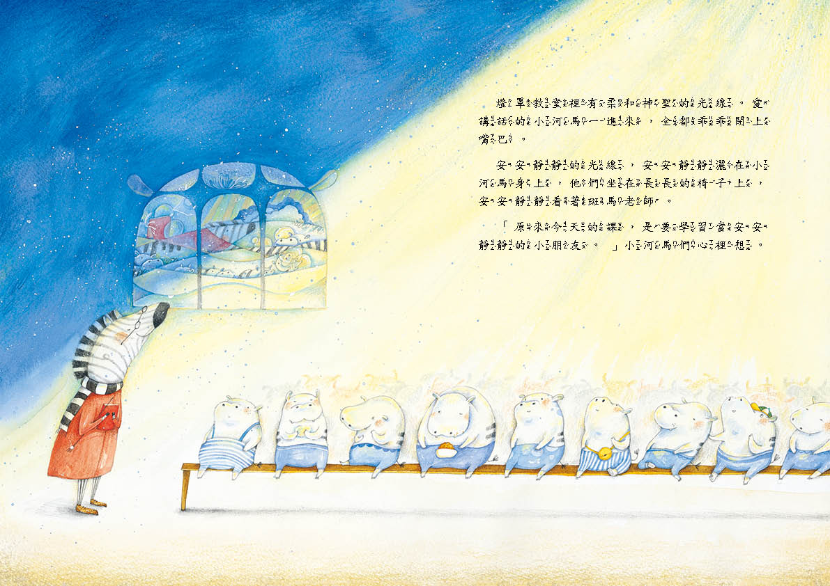 河馬小學的一百隻小河馬早早集合,大家又興奮又期待,濃霧中斑馬老師圍著黑白圍巾走了出來,宣布今天要去校外教學,可是等了又等,說好的大巴士怎麼一直沒出現?