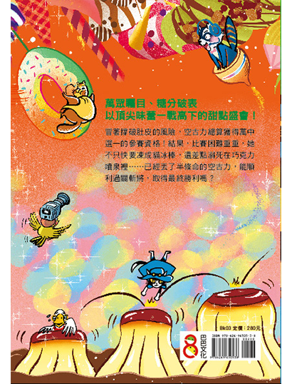 比賽當天,師徒倆迫不及待來到小甜甜爭霸賽的現場,空古力將發揮她身為《餓到腿軟美食雜誌》頭號粉絲的實力,解開每一道關於甜點的難題!只是沒想到,比賽困難重重,她不只差點凍成貓冰棒,還差點溺死在巧克力噴泉裡,最後和她爭奪冠軍的對手,竟然還是《餓到腿軟美食雜誌》的總編輯……